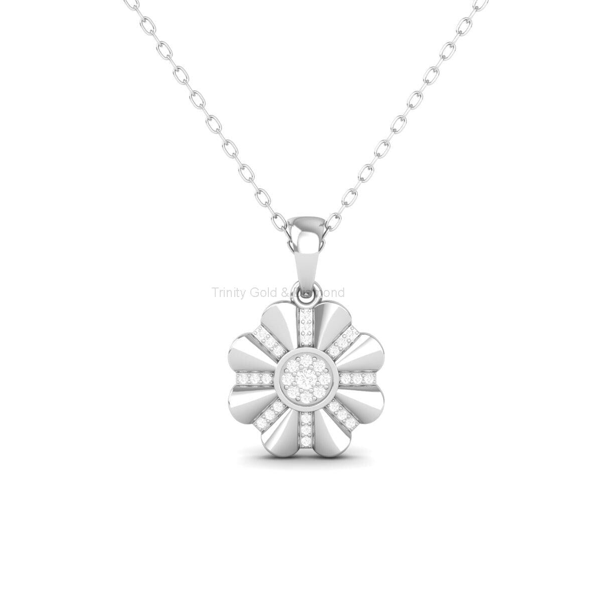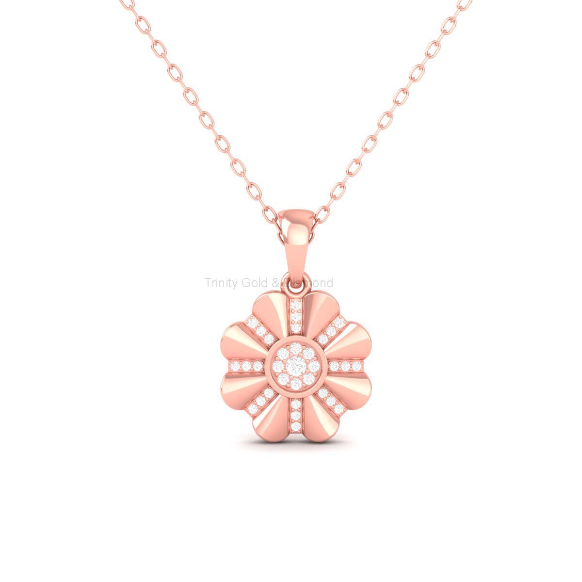 Embrace elegance with this beautifully crafted flower-shaped diamond pendant necklace, designed in luxurious 14K gold plating. The pendant features a delicate daisy-like bloom with shimmering round-cut diamonds gracefully set along each petal and at the center cluster, creating a radiant and feminine sparkle.