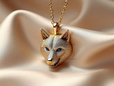Embody the fierce spirit of the wild with this elegant Pavé Wolf Head Pendant Necklace. Crafted with shimmering diamond-like stones, this pendant showcases a lifelike wolf face with a sculpted fur pattern and intense black gemstone eyes. The polished gold finish and intricate texture create a luxurious and powerful statement, symbolizing loyalty, bravery, and independence. Whether you're shopping for yourself or gifting a loved one, this pendant is the ultimate spirit animal accessory. image is ai generated.
