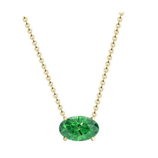 Green Emerald Necklace, 2.00 Carat Emerald Oval Shape Necklace Pendant, Sterling Silver Emerald Necklace, Emerald Pendant, Mothers Day Gift