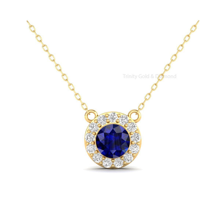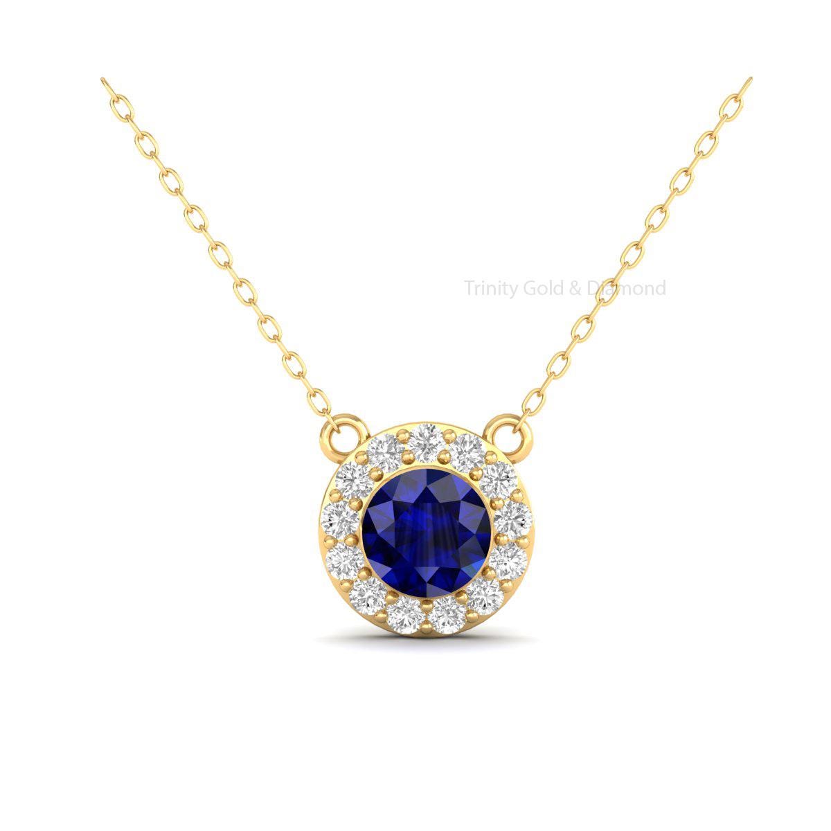 Sapphire & Diamond Halo Pendant, Halo Necklace, Dainty Moissanite Necklace, Dainty Necklace, 925 Sterling Silver Blue Round Pendant For Women, Gemstone Pendant Gift
