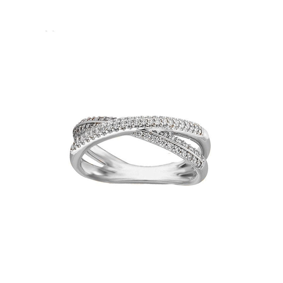 Criss Cross Moissanite Diamond Ring 14k Yellow gold Finish Stackable Wedding Band/True Elegant Cross Over Ring, Sterling silver Diamond Ring