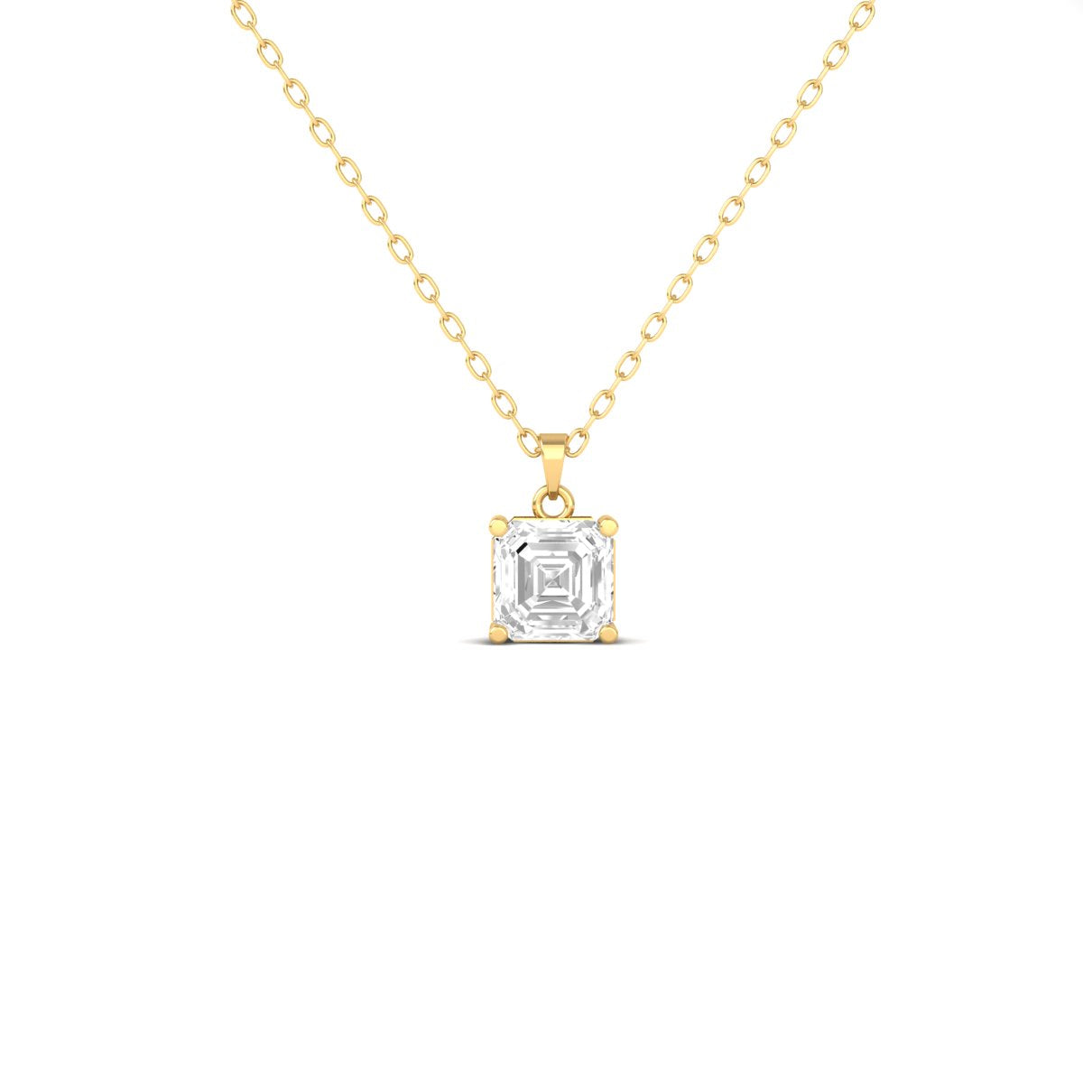 Asscher Cut Solitaire Pendant | Dainty Square Diamond Necklace | Minimalist Everyday Gold Jewelry | Emerald Cut Necklace Gift | 14k Yellow Gold Plated