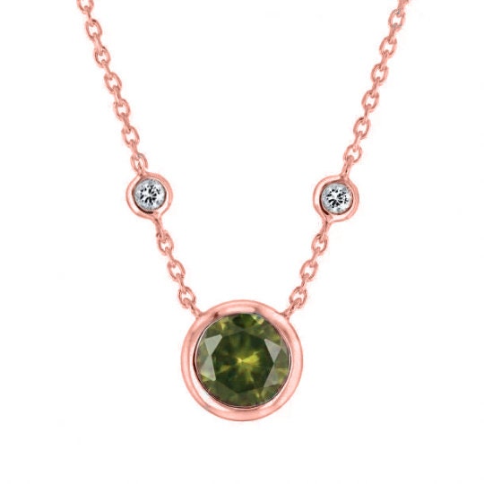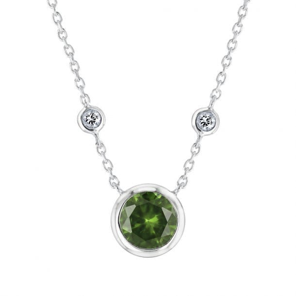 GREEN EMERALD DIAMOND Bezel Set Pendant/Necklace In Sterling Silver 925 14kt White Gold Finish 18 Inch Chain,Wedding necklace,Gift For Her