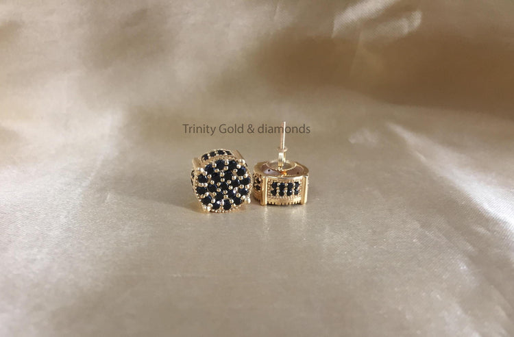 Black Stud • Mens Black Stud Earrings with Screw Back • Size 11.80mm • Flower Shape Cluster Unisex Stud Earrings • Perfect Birthday Gift