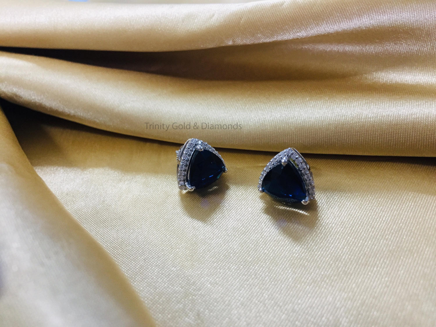 Blue Sapphire Trillian Cut Diamond Stud Earrings • Dainty Stud Earrings • Moissanite Diamond Stud • Minimalist Earrings • Birthday Gift