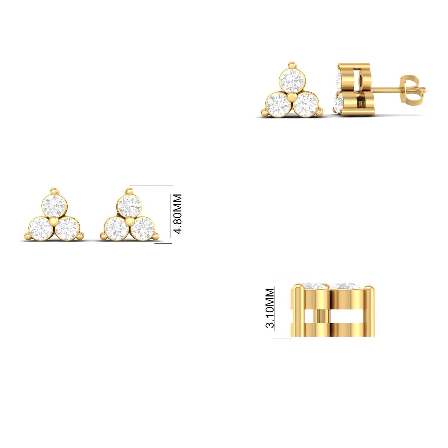 Three Stone Stud Earrings, Dainty Stud Earrings, Tiny Stud, Push Back Style Three Stone Studs, Handmade Jewelry, Round Cut Trio Stud Earring, Promise Earrings For Women Gift, Gift For Her, Mothers Day Gift from Kids, Three Stone Moissanite Stud Earrings, Moissanite Stud
