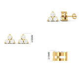 Three Stone Moissanite Stud Earrings, Dainty Diamond Stud Earrings, Tiny Stud, Push Back Three Stone Studs, Handmade Trio Stud Earrings