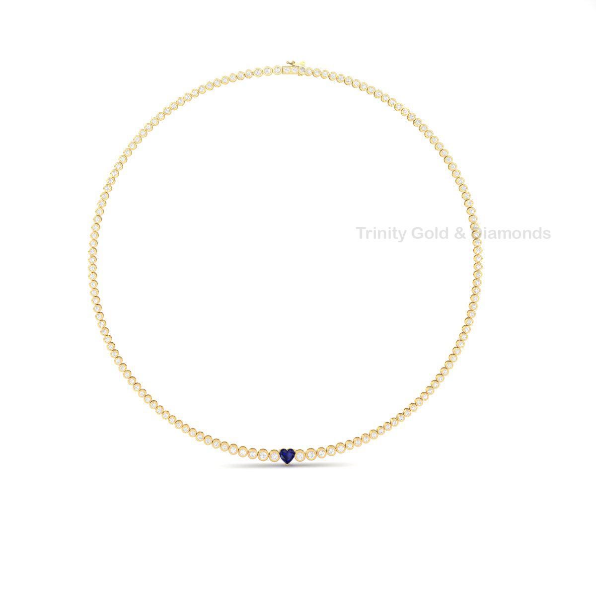 Sapphire Heart Tennis Necklace • Bezel Set Necklace • Handmade Diamond Jewelry • Mothers Day Gift for Her • Sapphire Gemstone Necklace