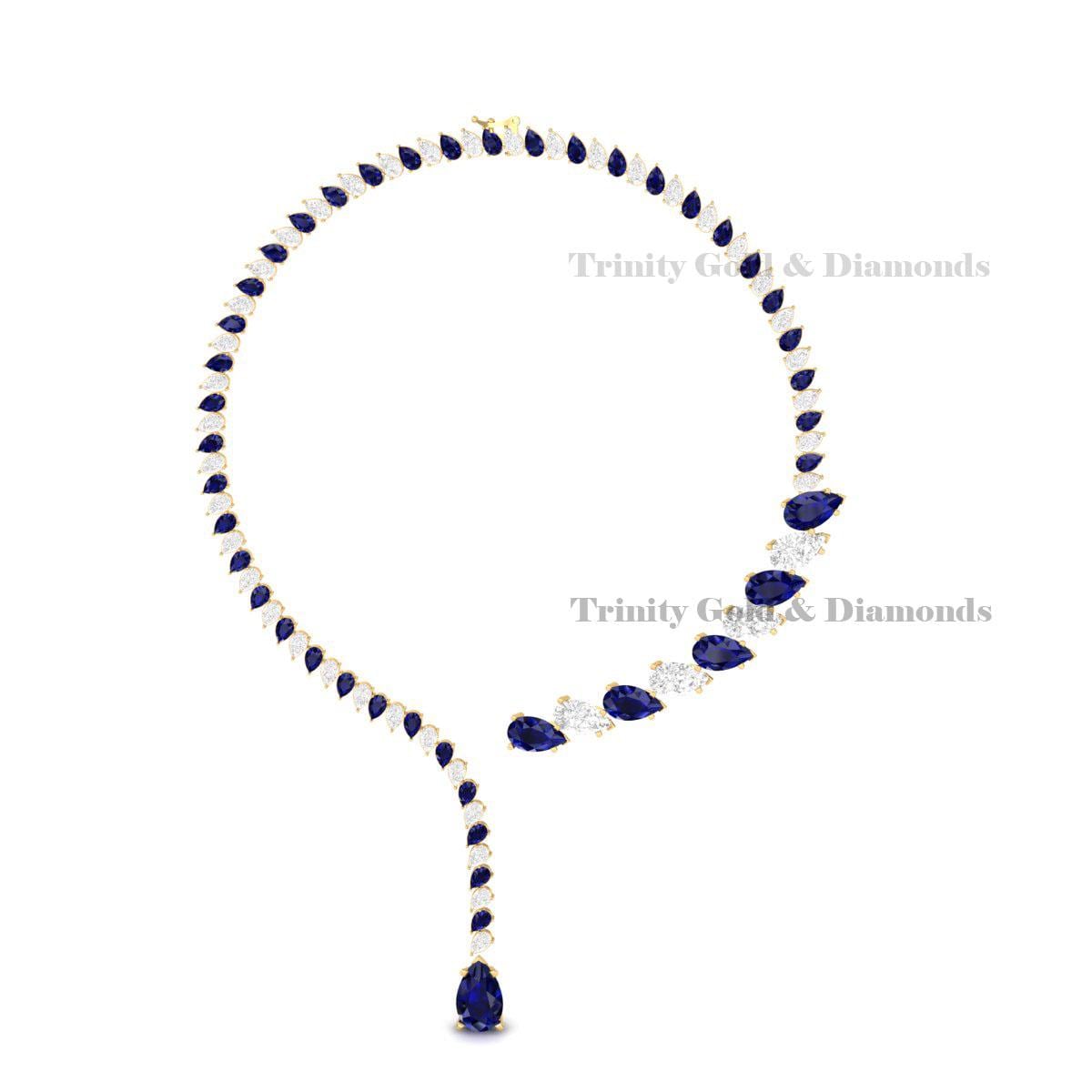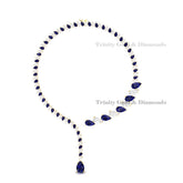 Statement Sapphire Blue Teardrop Bridal Necklace in 925 Sterling Silver | Elegant Wedding Jewelry Gift for Her | Tear Drop Lariat Necklace