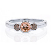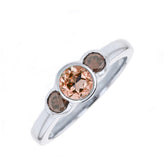 2.50 Carat Three Stone Champagne Diamond Bezel Set Engagement Ring , Sterling Silver Ring, Bezel Set Engagement Ring