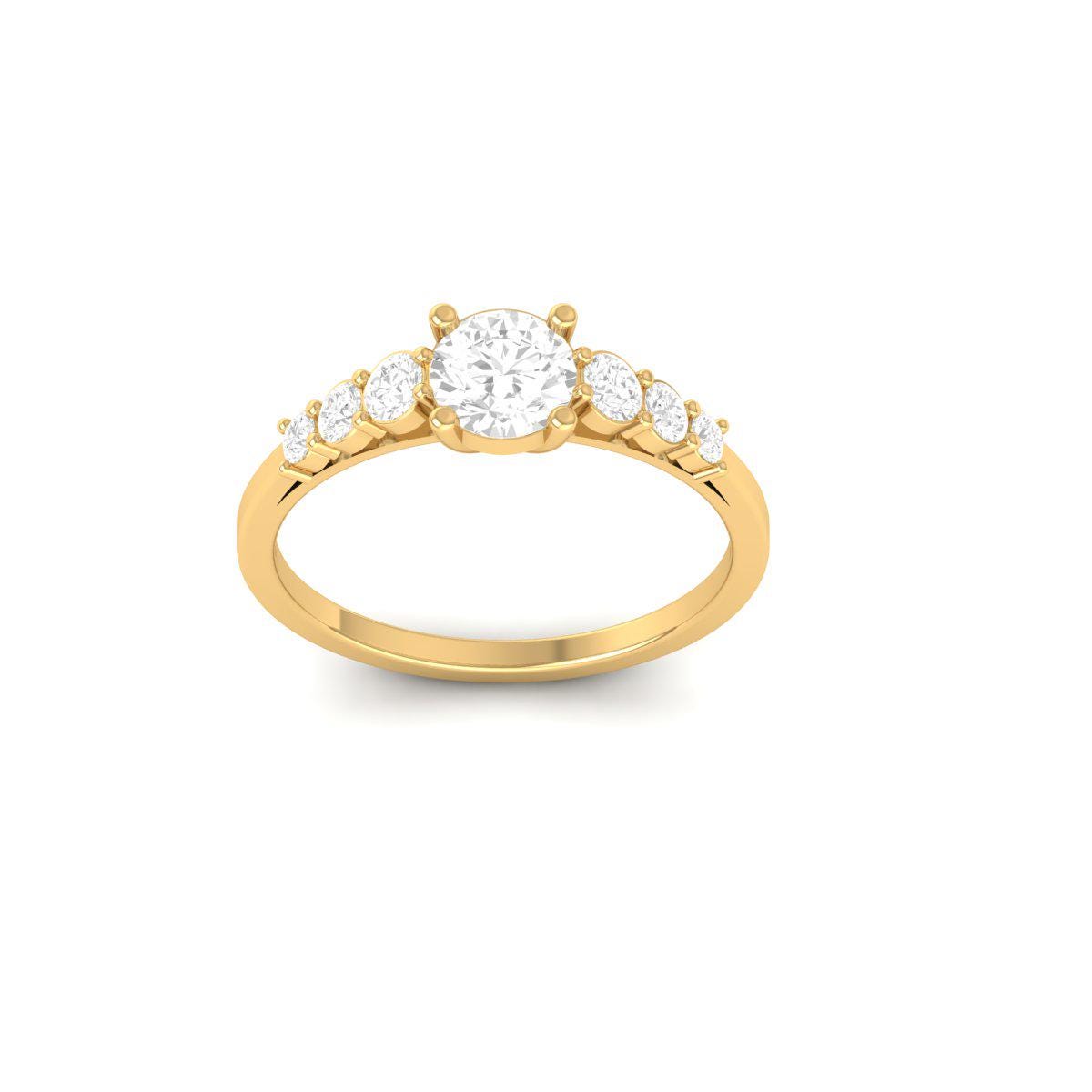 Celebrate elegance and everlasting love with this exquisite Moissanite Diamond Three Stone Engagement Ring. Expertly crafted in 925 Sterling Silver with 14KT Yellow Gold Plating, this ring showcases a classic trio of sparkling round-cut Moissanite stones. The center stone is flanked by smaller side stones for added brilliance, making it perfect as a proposal ring, promise ring, or anniversary gift. Its sleek 1.70mm band gives it a refined and timeless appeal, while the 6.10mm setting highlights the beauty of the stones. Whether you're planning a special moment or gifting her something unforgettable, this dainty ring delivers both sparkle and sentiment.