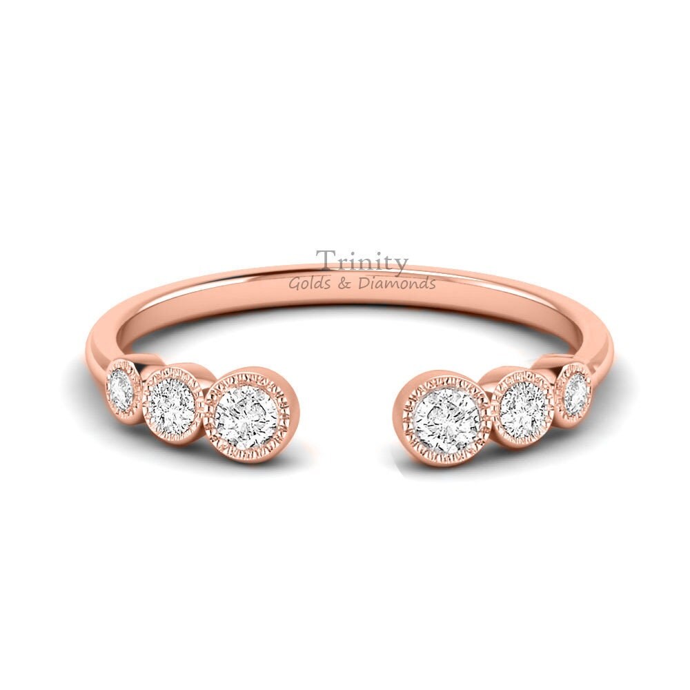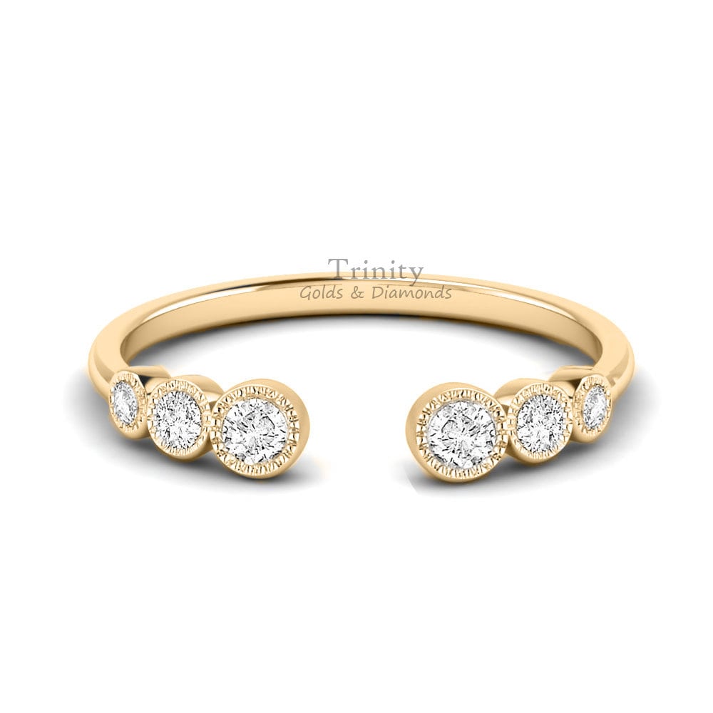 14k Yellow Gold Plated, Round Cut Moissanite & Diamond Ring, Open Women's Ring, Round Diamond Ring, Sterling Silver Ring, Mother's Day Gift