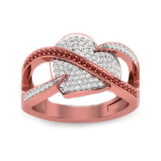 2.00 Ct Moissanite & Ruby Ring, Heart Shape Ring With 14k Yellow Gold Plated, Engagement Wedding Ring, Handmade Ring, Valentine Day Ring