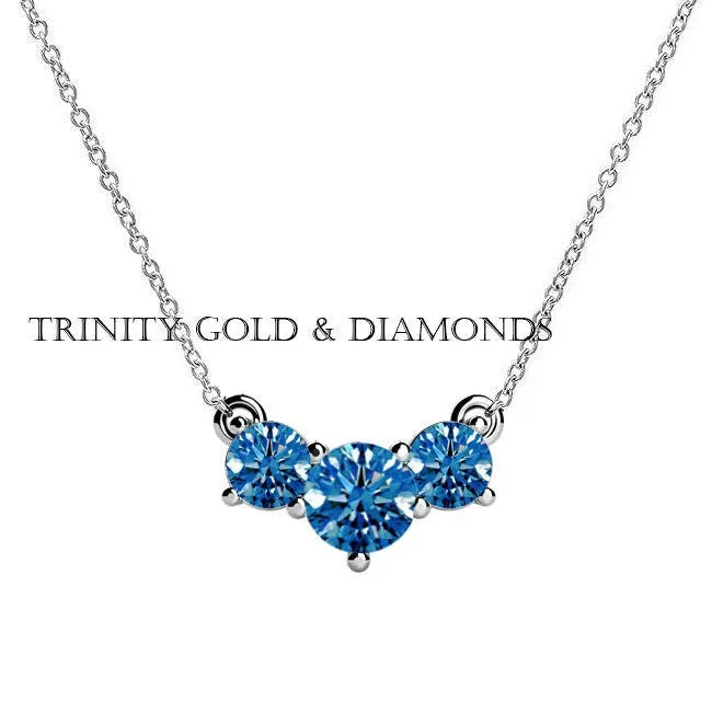 3.00 Ct Round Cut Blue Sapphire Three Stone Dainty Delicate Necklace For Her, Sapphire Delicate Necklace, gemstone Dainty Necklace, Gift Her