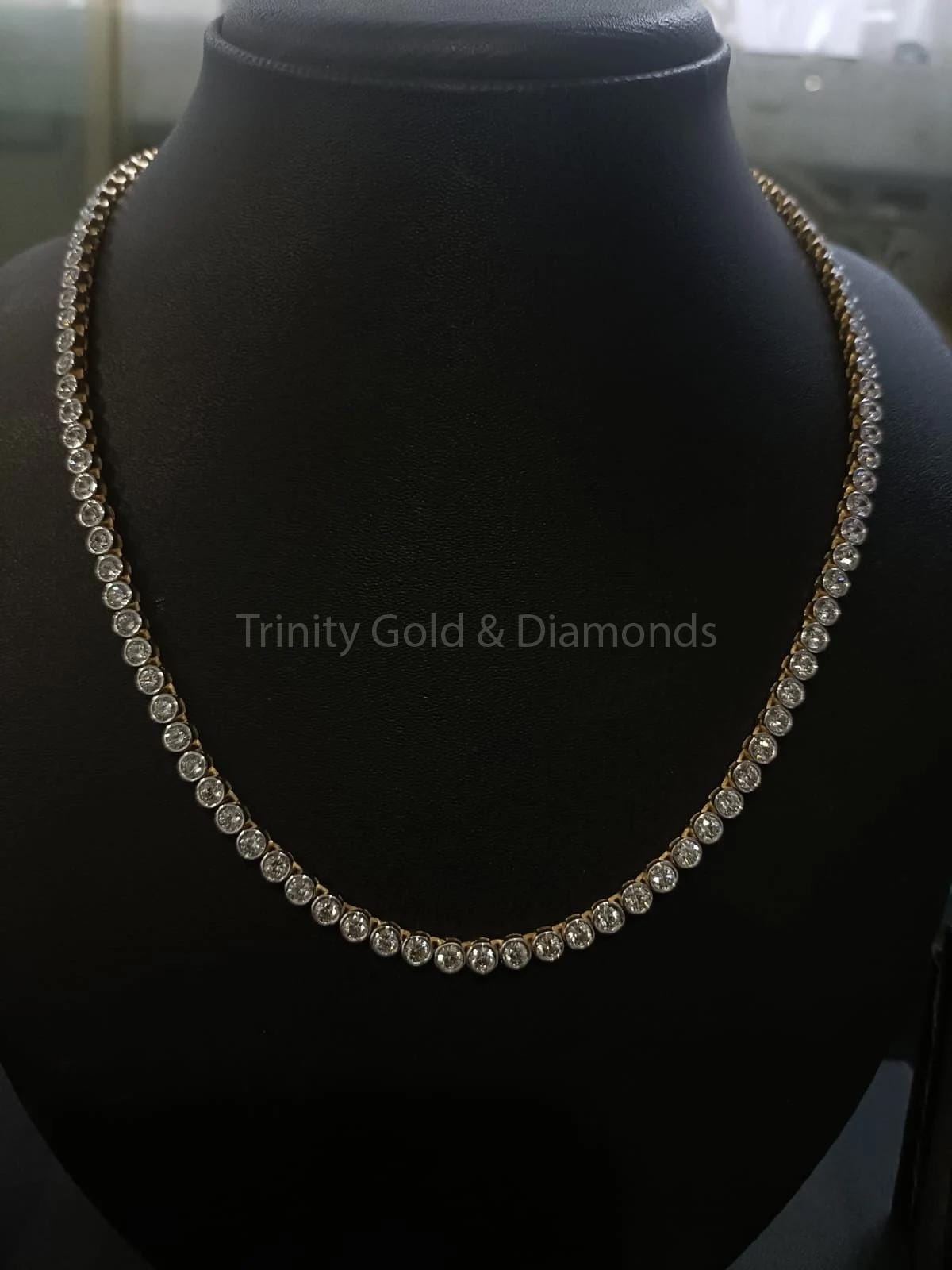 3MM BEZEL Set Moissanite Diamond Tennis Necklace For Women, Tennis Necklace, Mothers Day Gift, 14KT Yellow Gold Plated