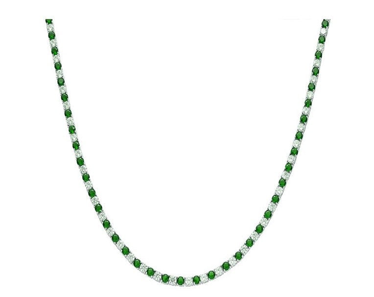 3MM GREEN EMERALD And Moissanite Diamond Tennis Necklace, Emerald Necklace, Emerald Tennis Necklace, Emerald Gemstone Necklace, Gift For Her