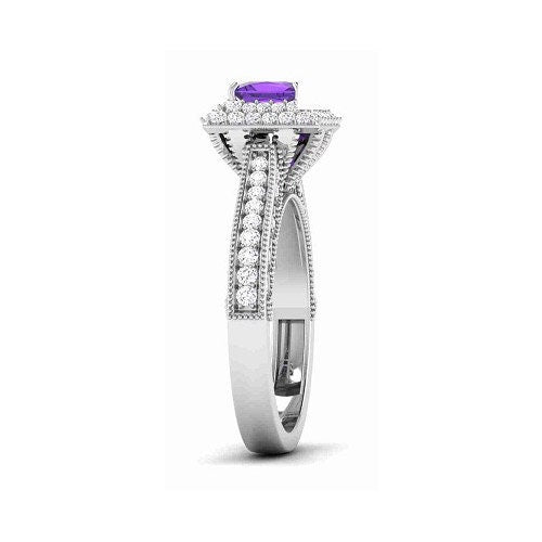 Amethyst Engagement Ring, 1.50 Ct Lab Created Princess Amethyst Halo Diamond, Engagement Ring For Women,Princess Cut Engagement,Gift for Her