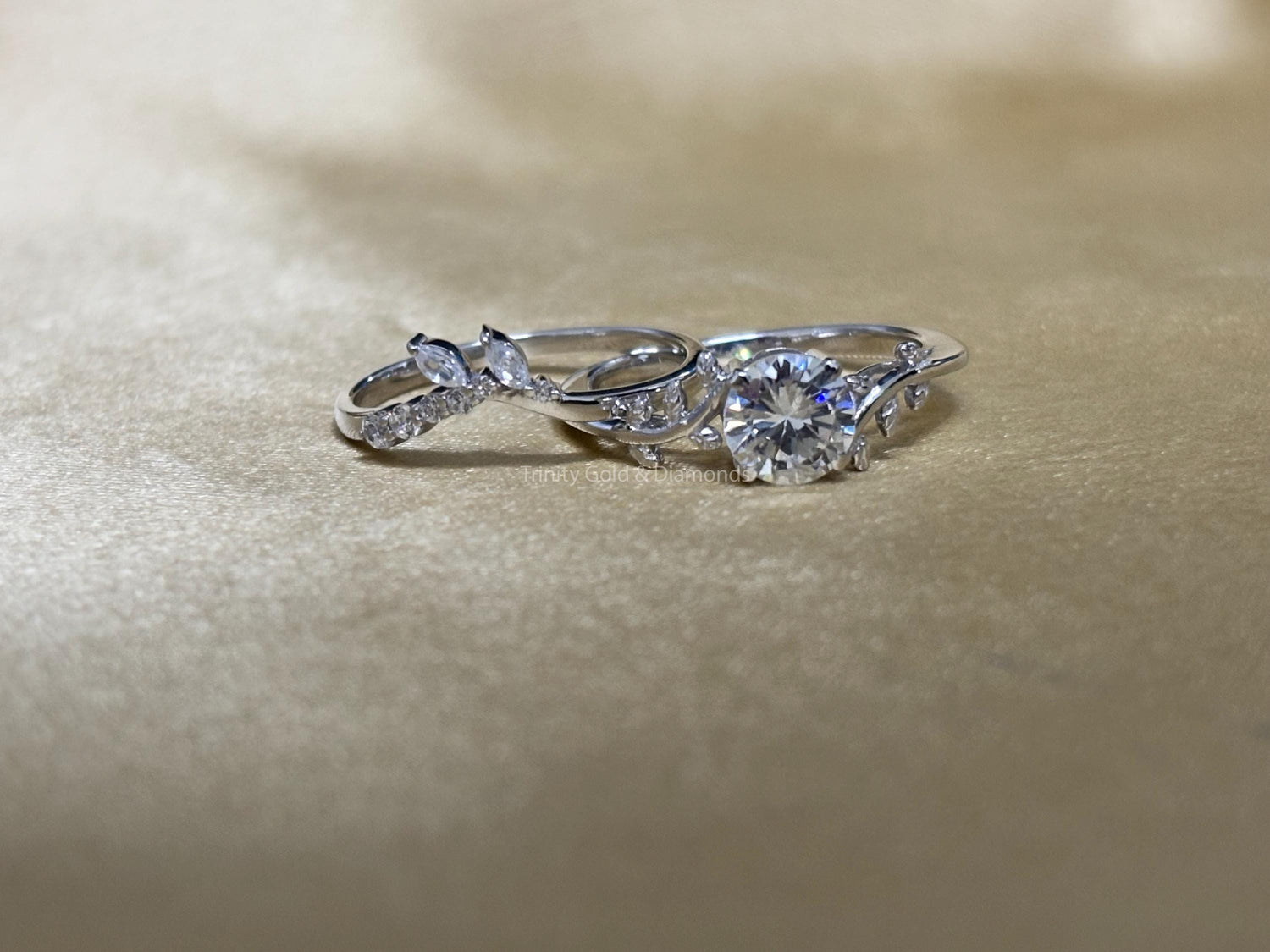 Bridal Set • Lab Grown Diamond Bridal Set For Women • Wedding Set • Perfect Wedding Gift for Her • Leaf Work Classic Bridal Set Gift •