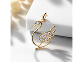 Symbolizing grace, peace, and longevity, this Crane Bird Pendant Necklace is a timeless piece of jewelry art. Crafted in 14k gold over solid 925 sterling silver, it features a sleek crane silhouette detailed with shimmering Moissanite stones on the wings and eye. image is ai generated.
