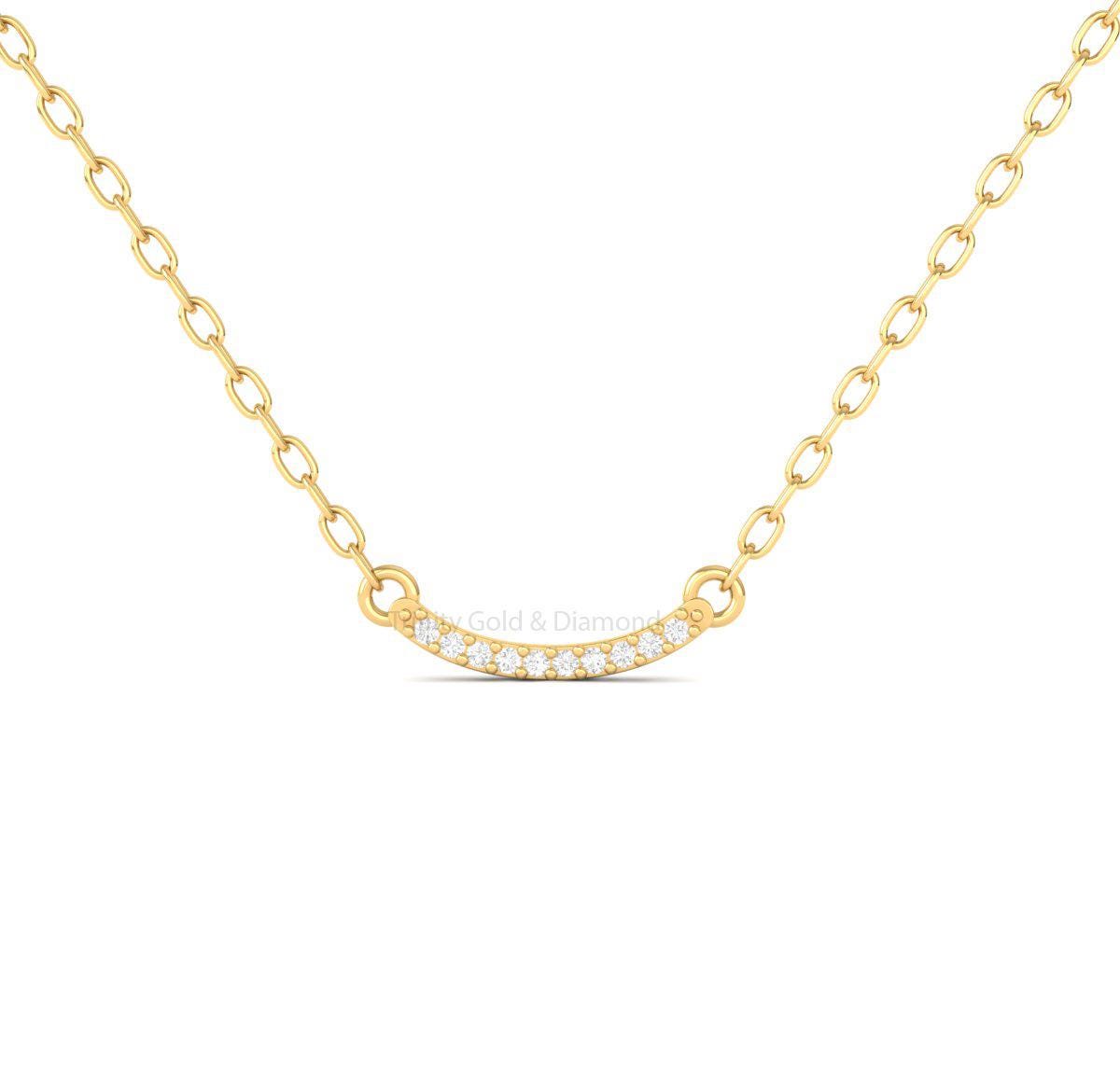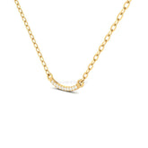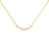 Add a touch of timeless elegance to your jewelry collection with this dainty diamond bar necklace. Crafted with precision and set in 14k yellow gold plating, the curved pendant features sparkling round-cut cubic zirconia stones that catch the light beautifully. Its minimalist design makes it perfect for layering or wearing solo as an everyday piece. Whether you're dressing up for an event or keeping it simple, this necklace adds effortless charm. An ideal gift for her on birthdays, anniversaries, or just because!