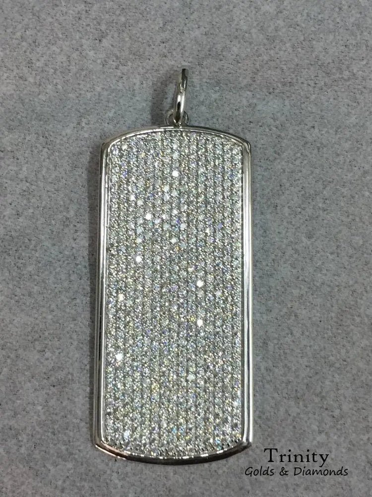 Diamond Dog Tag Necklace/ Pave Setting Diamond Pendant/ 925 Sterling Silver Jewelry/ Handmade Pendant Jewelry/ Diamond Birthday Gift Idea