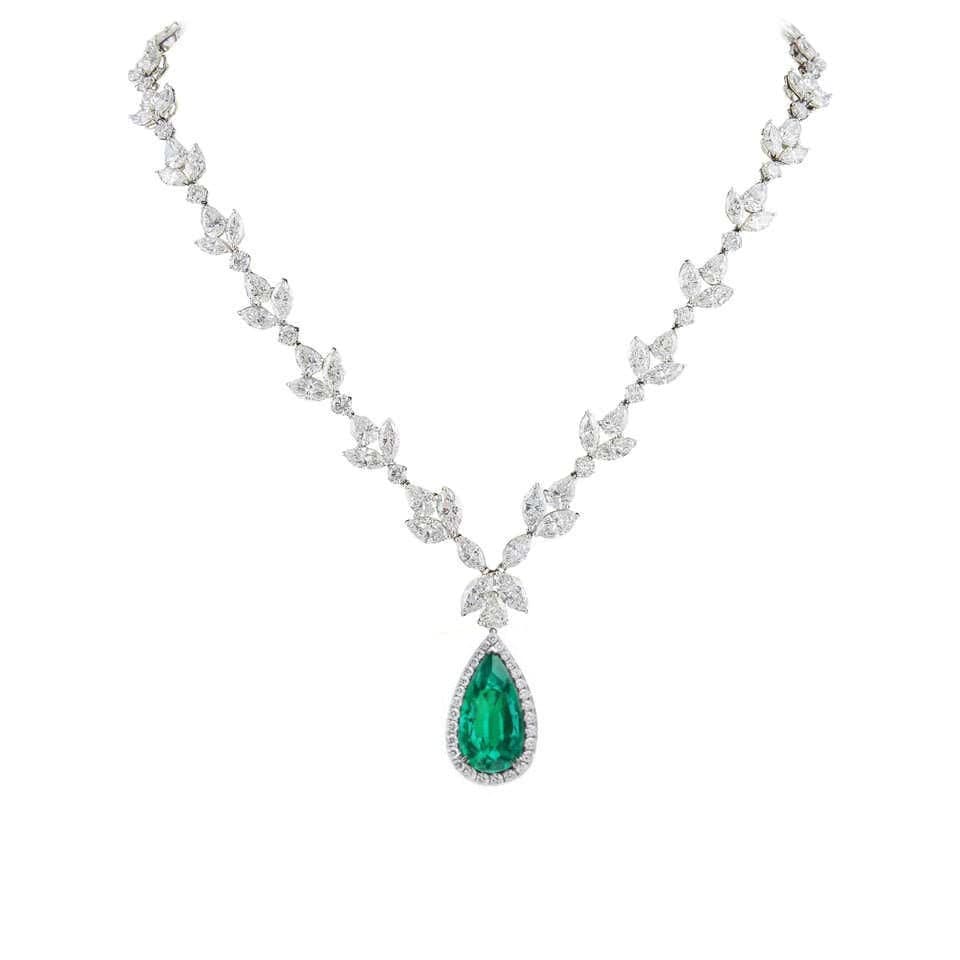 Emerald and Diamond Necklace • Green Pear Emerald Engagement Wedding Necklace • Vintage Bridal Jewelry • Perfect Gift