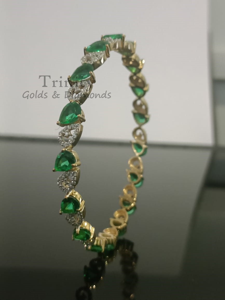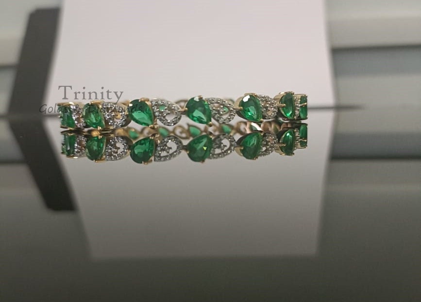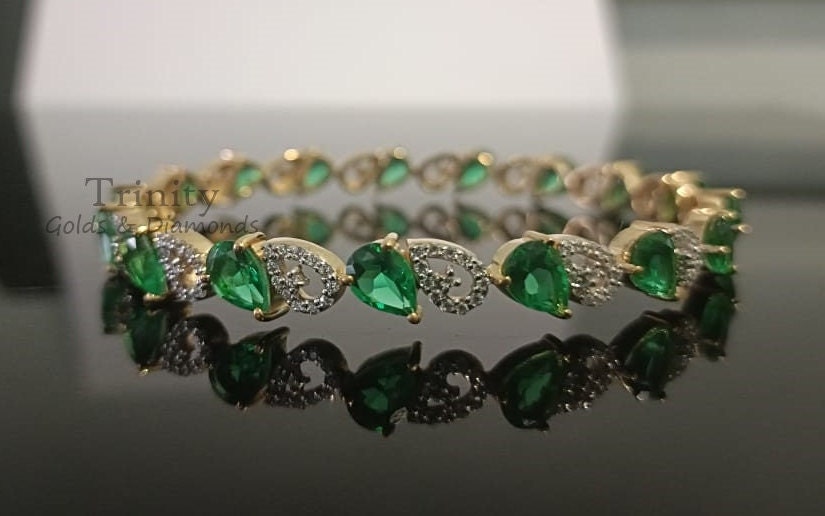 Emerald Bangle Bracelet, 5Ct Pear Emerald Diamond Bangle Bracelet For Her, Emerald Bangle Bracelet, Sterling Silver Emerald Bangle Bracelet