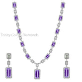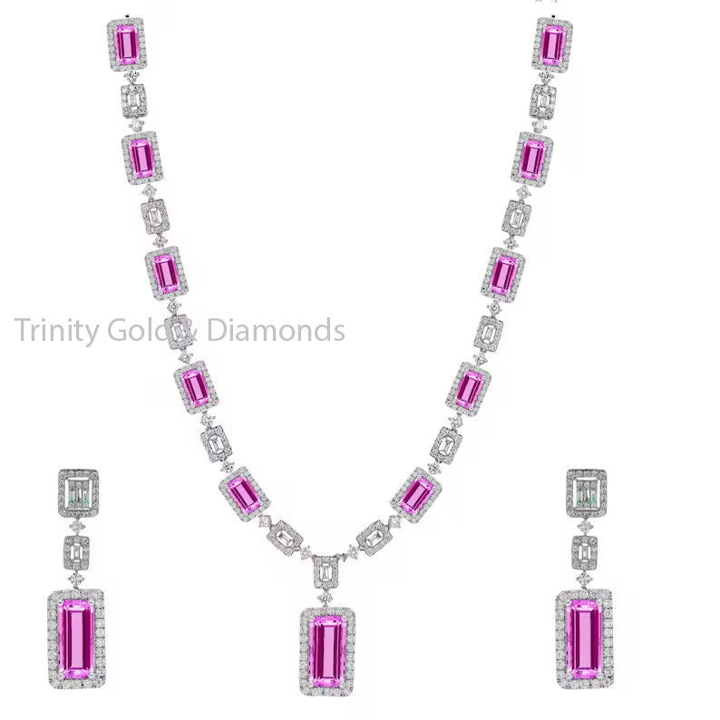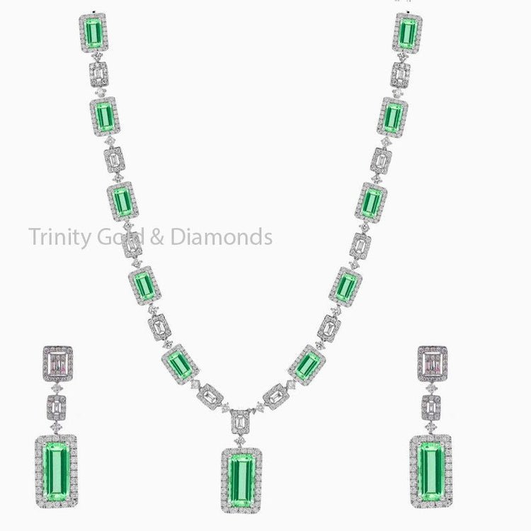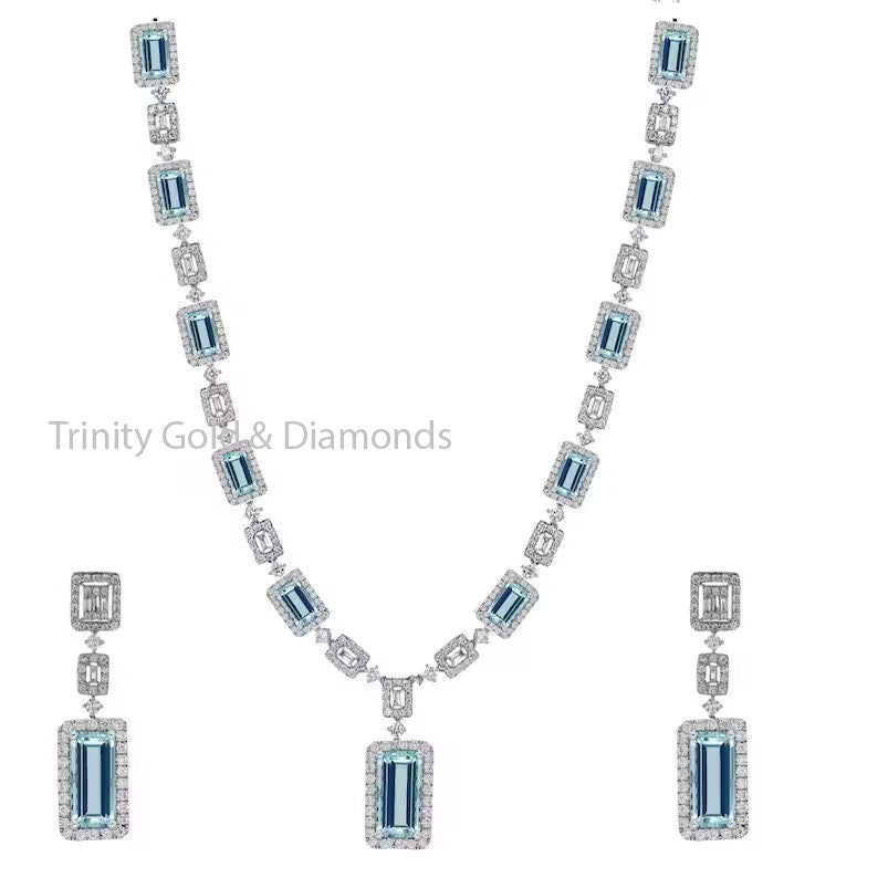 This stunning necklace set features an emerald-cut aquamarine gemstone, complemented by moissanite diamonds, all set in 925 sterling silver. The soft blue aquamarine, March’s birthstone, makes this necklace a meaningful and stylish choice, especially as a gift for mom. Combining the elegance of emerald-cut gemstones with the sparkle of moissanite, this necklace set is perfect for birthdays, Mother’s Day, or any special occasion.