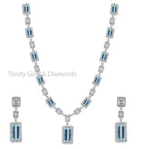 Emerald Cut Aquamarine Necklace Set • Moissanite Diamond Necklace in 925 Sterling Silver • Birthstone Necklace • Perfect Gift for Mom