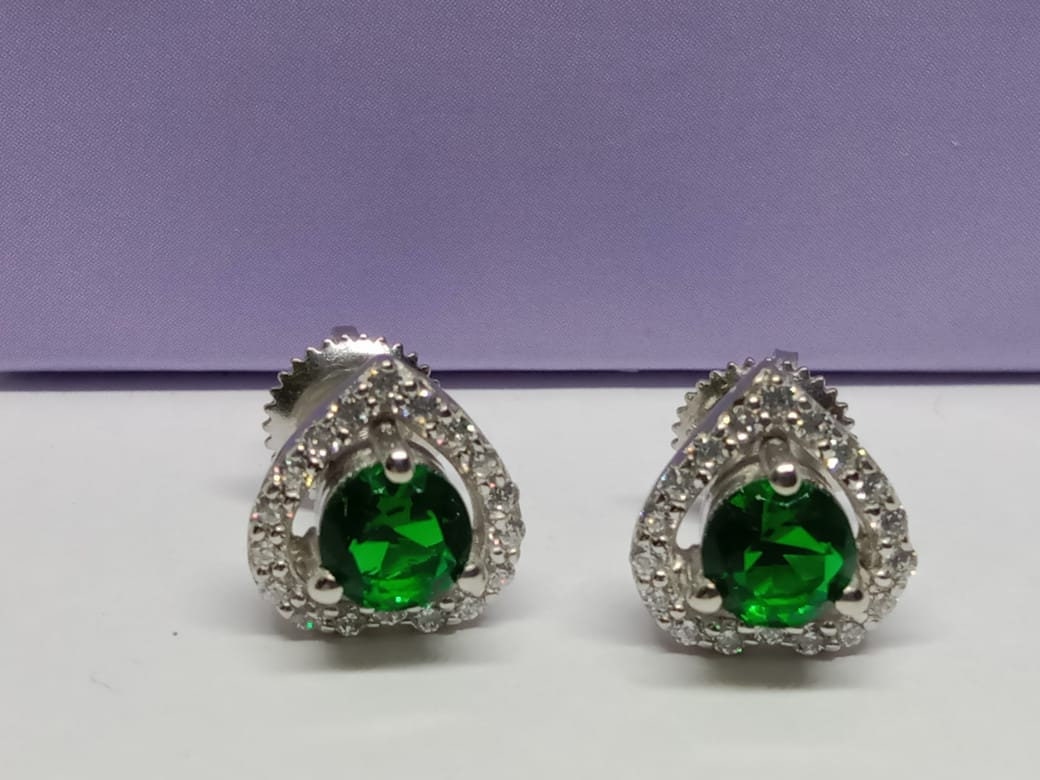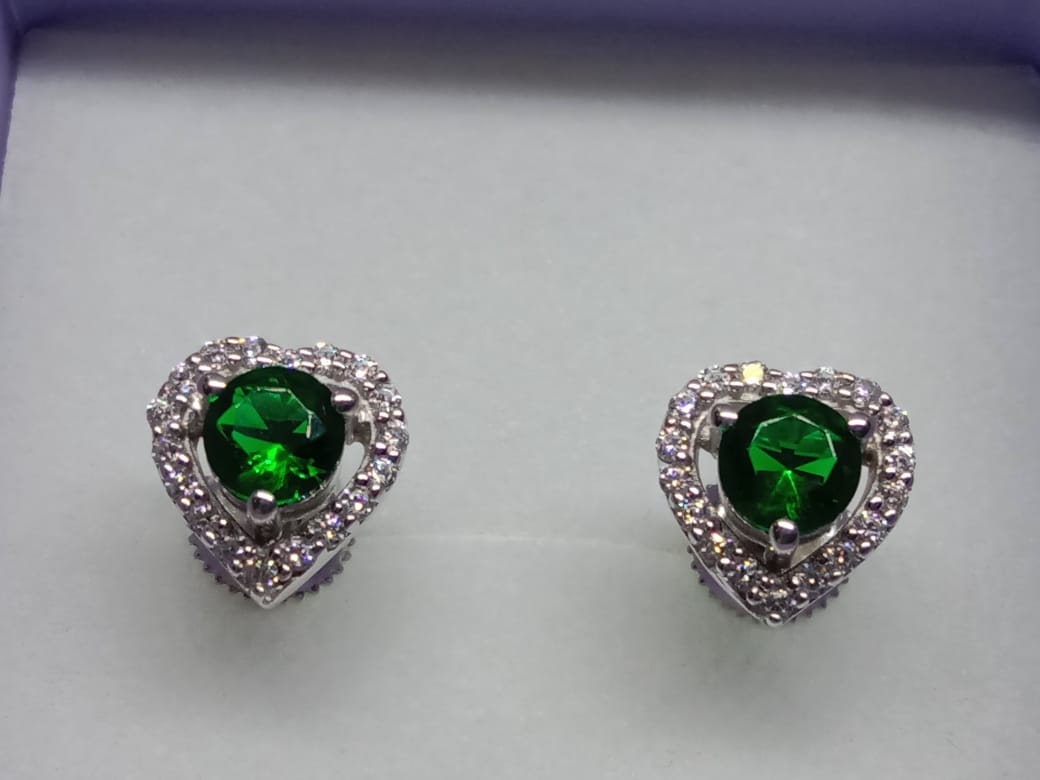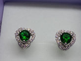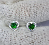 Emerald Heart Stud Earrings, Emerald Earrings, Round Cut Emerald Diamond Stud Earrings, Screwback Emerald Stud, Sterling Silver Emerald Stud