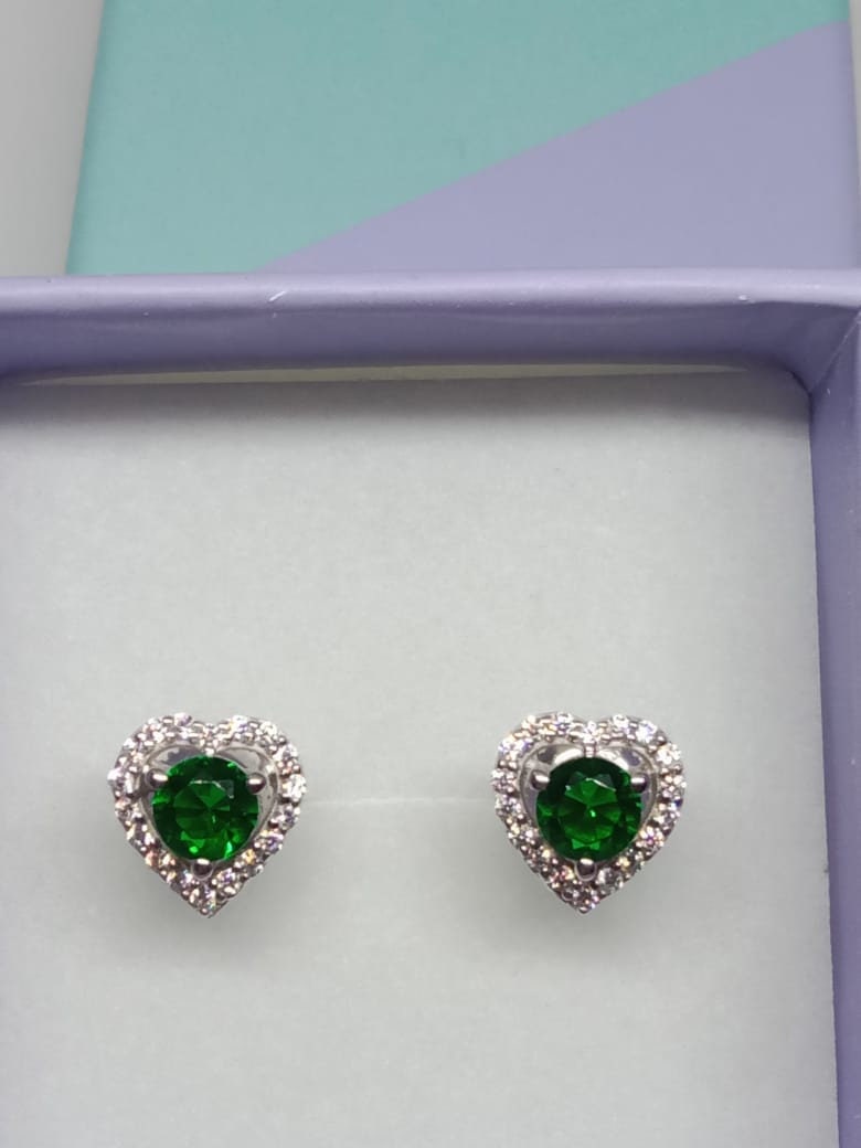 Emerald Heart Stud Earrings, Round Cut Emerald Diamond Stud Earrings, Screwback Emerald Stud,Sterling Silver Emerald Stud, Mother's day Gift