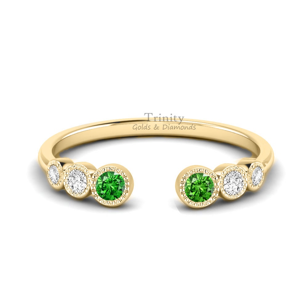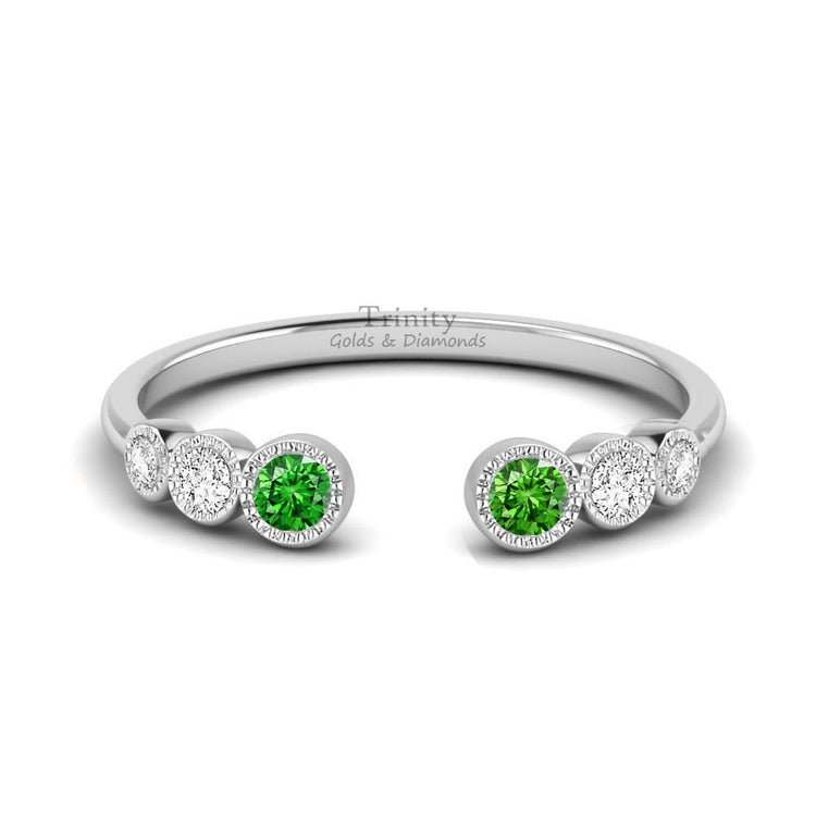 Emerald Open Band, Handmade Ring, Dainty Emerald Ring, Emerald Stacking Ring, Adjustable Ring, Sterling Silver Emerald Ring, Delicate Band