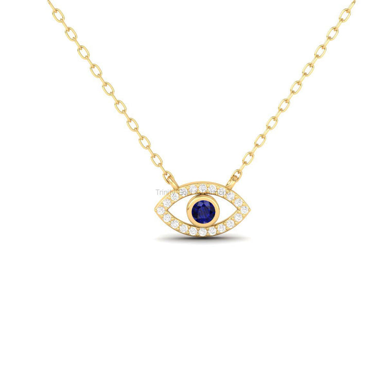 Evil Eye Necklace with Blue Sapphire, 18K Gold Over Sterling Silver, Diamond Accent Protection Pendant, Handmade Gift for Her, All Gemstones
