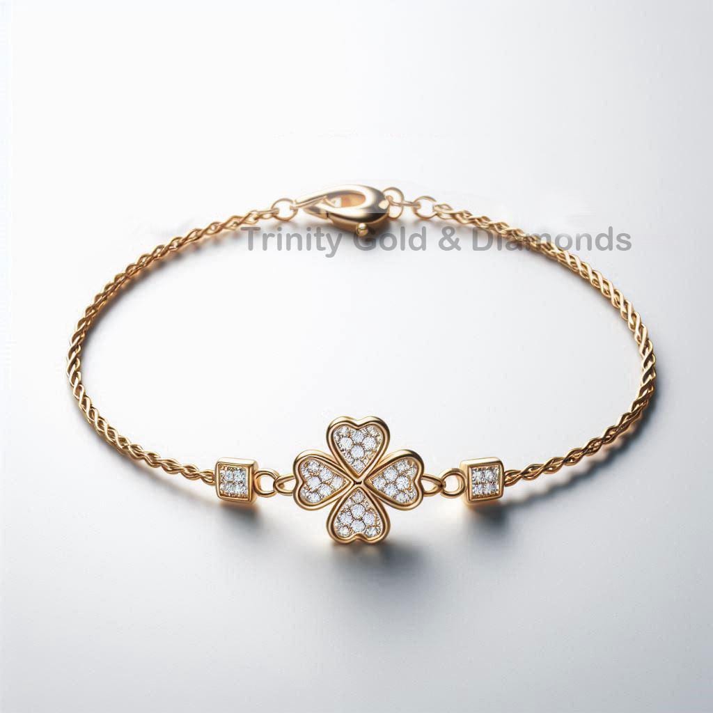 Four Leaf Clover Bracelet for Women, Twisted Rope Chain Lucky Charm Bracelet, Heart Petal Gold Bracelet with Pavé Diamonds, Gift Jewelry
