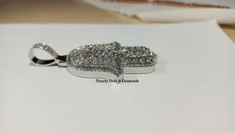 HAMSA PENDANT • Real Moissanite Diamond Hamsa Hand Pendant In Sterling Silver • Big Hamsa Pendant • Relegiuos Hamsa pendant Perfect Gift
