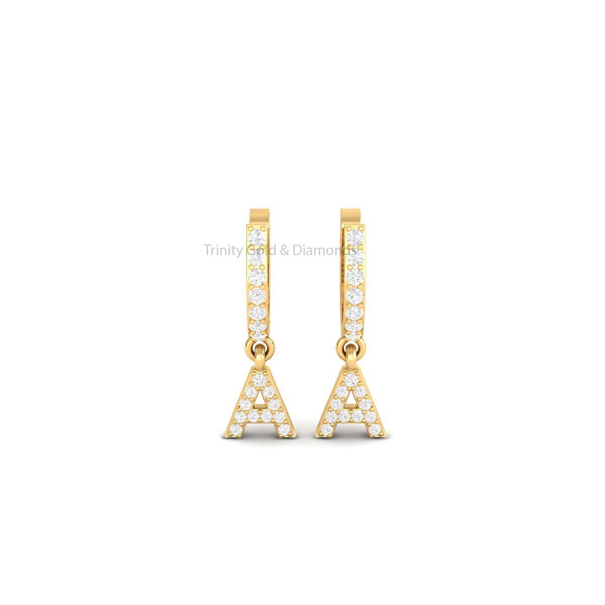 Handmade hoop earrings, Letter charm earrings, Diamond initial hoops, Lab-grown diamond earrings, Personalized earrings, Initial hoop earrings, Women's hoop earrings, Dangle charm earrings, Diamond studded earrings, Gift for her, Custom letter earrings, Fine jewelry hoops, Elegant diamond hoops, Sustainable diamond jewelry, Women's personalized earrings