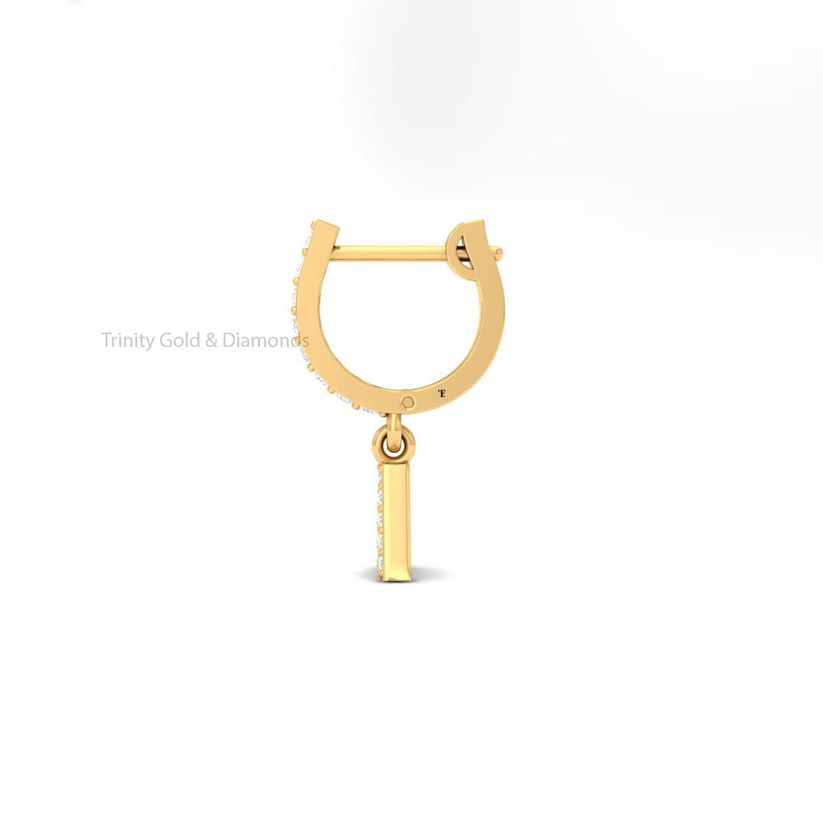 Letter Dangle Charm Hoop Earring • Initial Hoop Earring • Personalized Diamond Studded Initial Earrings • Lab Grown Diamond Women's Hoops