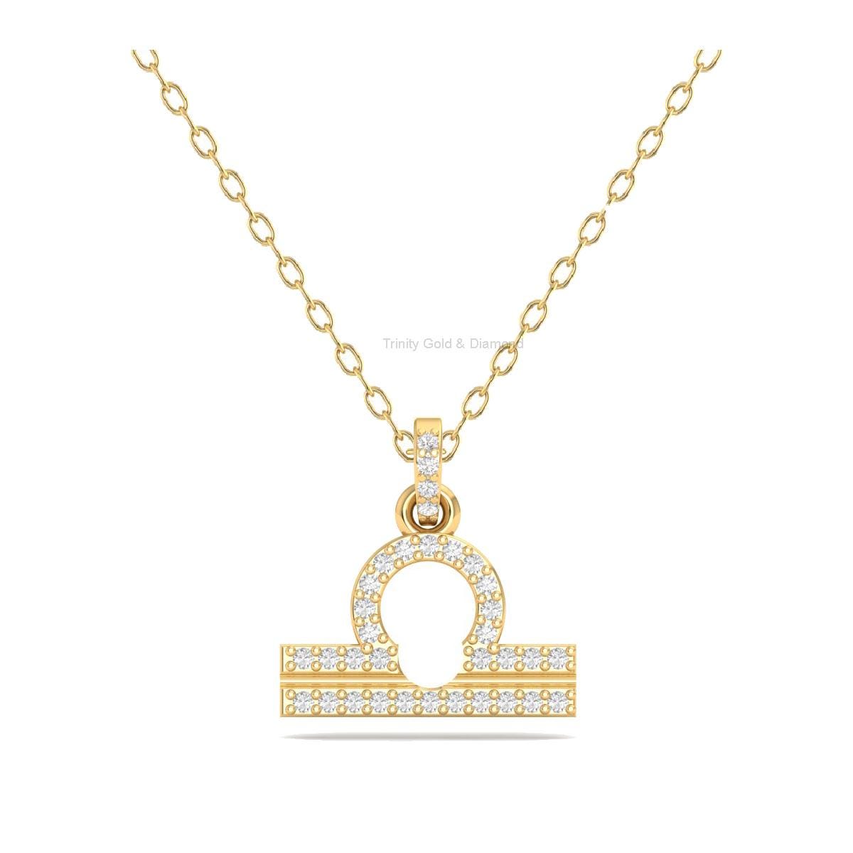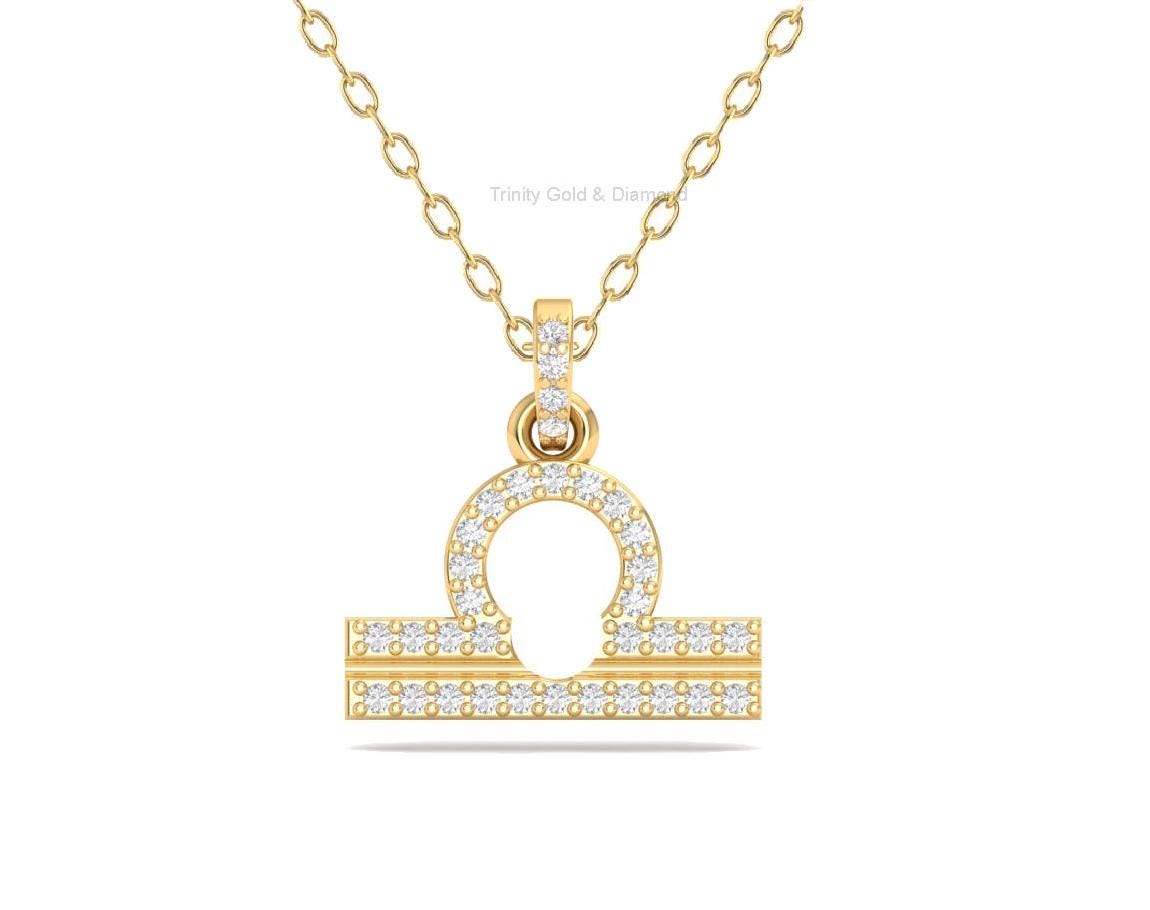 Libra Zodiac Pendant, Diamond Astrology Charm in 14K Gold Plated, Dainty Libra Gift for Her, October Birthday Jewelry, Mother’s Day Gift