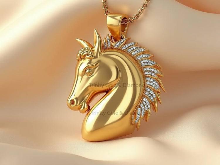 unicorn pendant, horse unicorn charm, diamond mane, fantasy jewelry, gift for her, magical necklace, mythical animal, unicorn necklace, totem jewelry, equestrian charm, bold unicorn, polished gold, enchanted pendant, fairy tale gift, unique charm, luxury necklace, women’s fantasy, dreamy jewelry, animal lover gift, gold unicorn