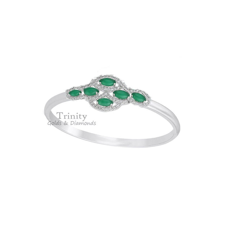Marquise Gemstone And Moissanite Round Diamond Bangle, 14KT White Gold plated, Gemstone Bangle, Multistone Bangle For Women