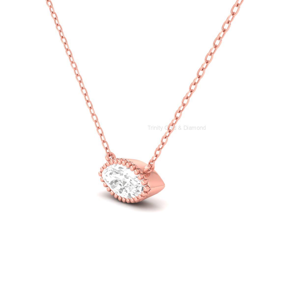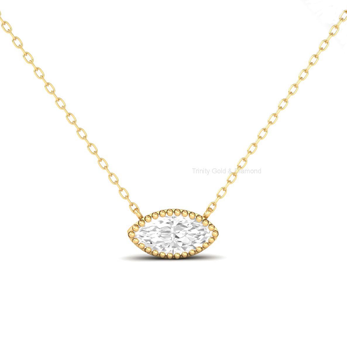 Marquise Moissanite Pendant, 14K Gold Plated Solitaire Charm, Dainty Bezel Set Necklace Gift for Her, Mother’s Day Jewelry
