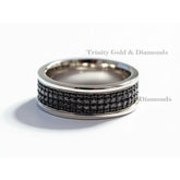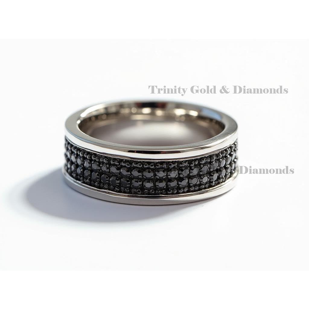 Clean, modern, and powerful — this men’s band ring features three full rows of dazzling black cubic zirconia stones, perfectly set within a polished silver-tone frame. The sleek edges offer a refined finish while the bold black stones add a touch of luxury and edge. Ideal as a fashion ring or alternative wedding band, this ring is made for confident men who appreciate standout details. image is ai generated.