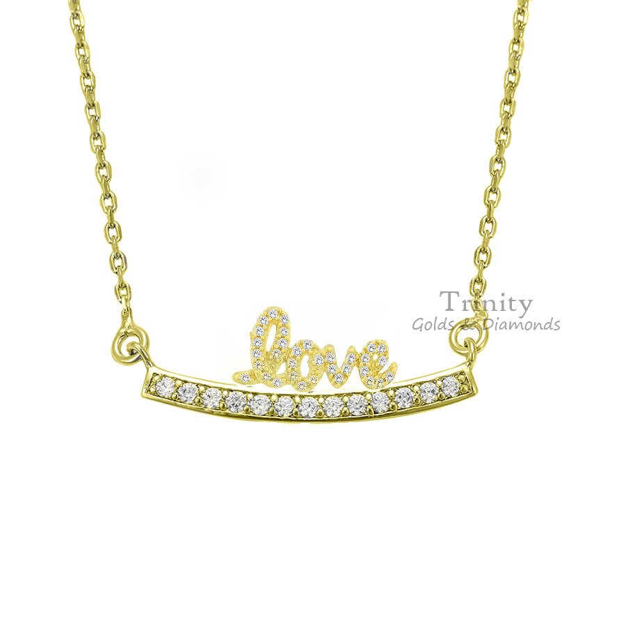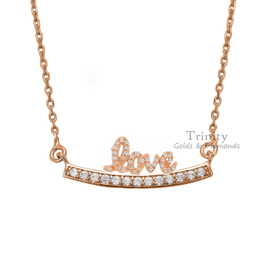 MOISSANITE CURVE NECKLACE, Moissanite Love Name Necklace, Bar Diamond Necklace, Valentine's Day Pendant Gift, Love Name Pendant Necklace