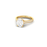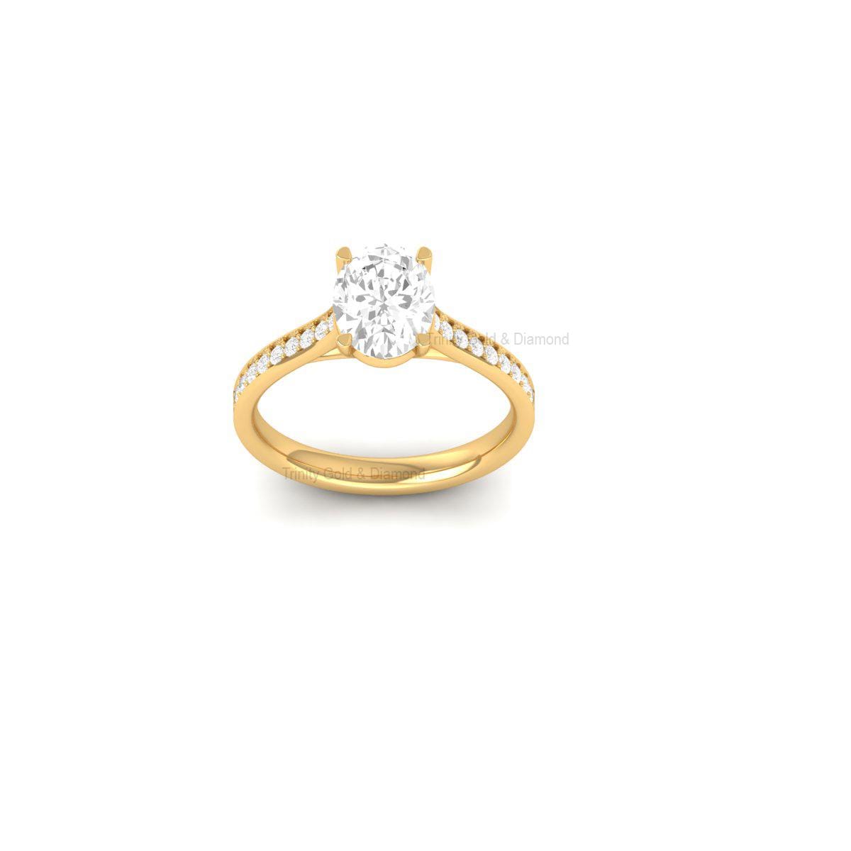 Oval Cut Lab Grown Diamond Engagement Ring | Gold Finish Solitaire Ring with Pave Band | Bridal Ring for Her | Elegant Proposal Ring