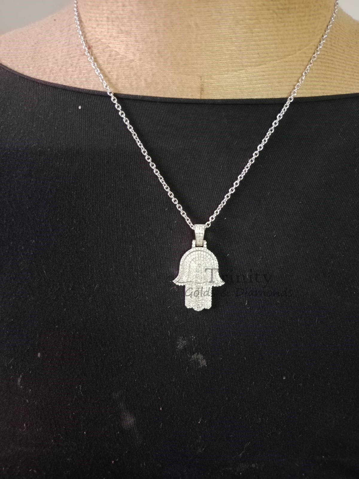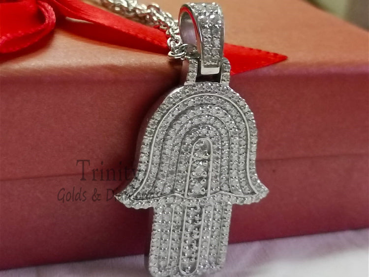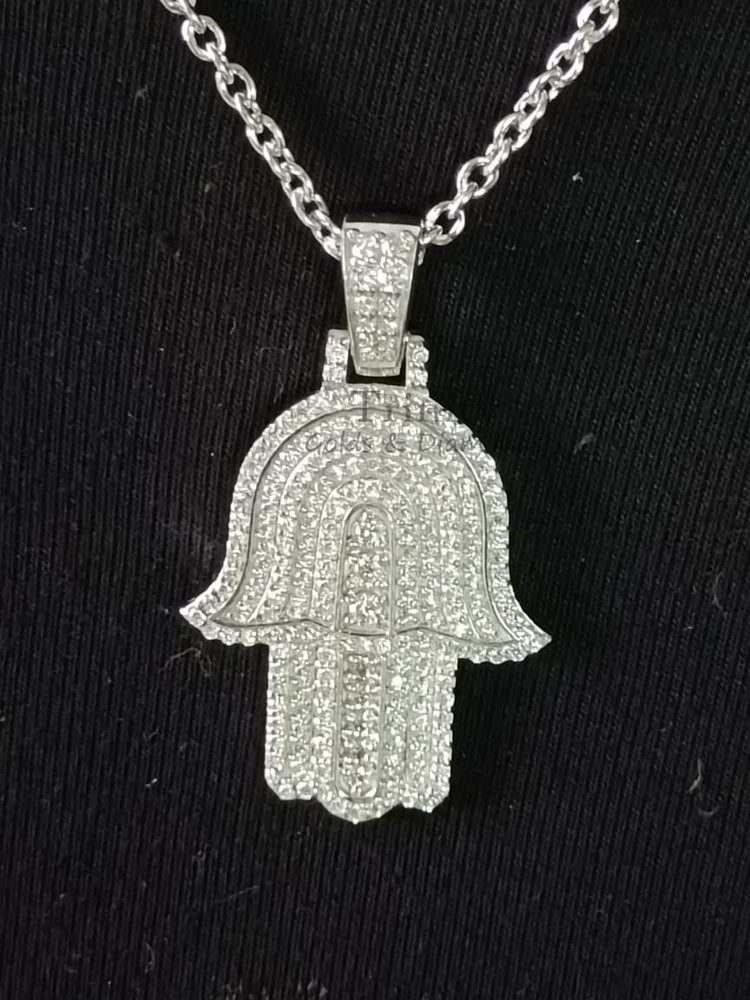 Pave Set Hamsa Hand Moissanite Pendant in 925 Sterling Silver White, Moissanite Hamsa Pendant For Men And Women