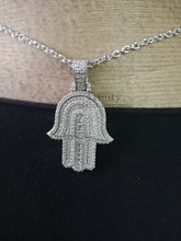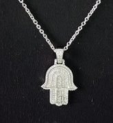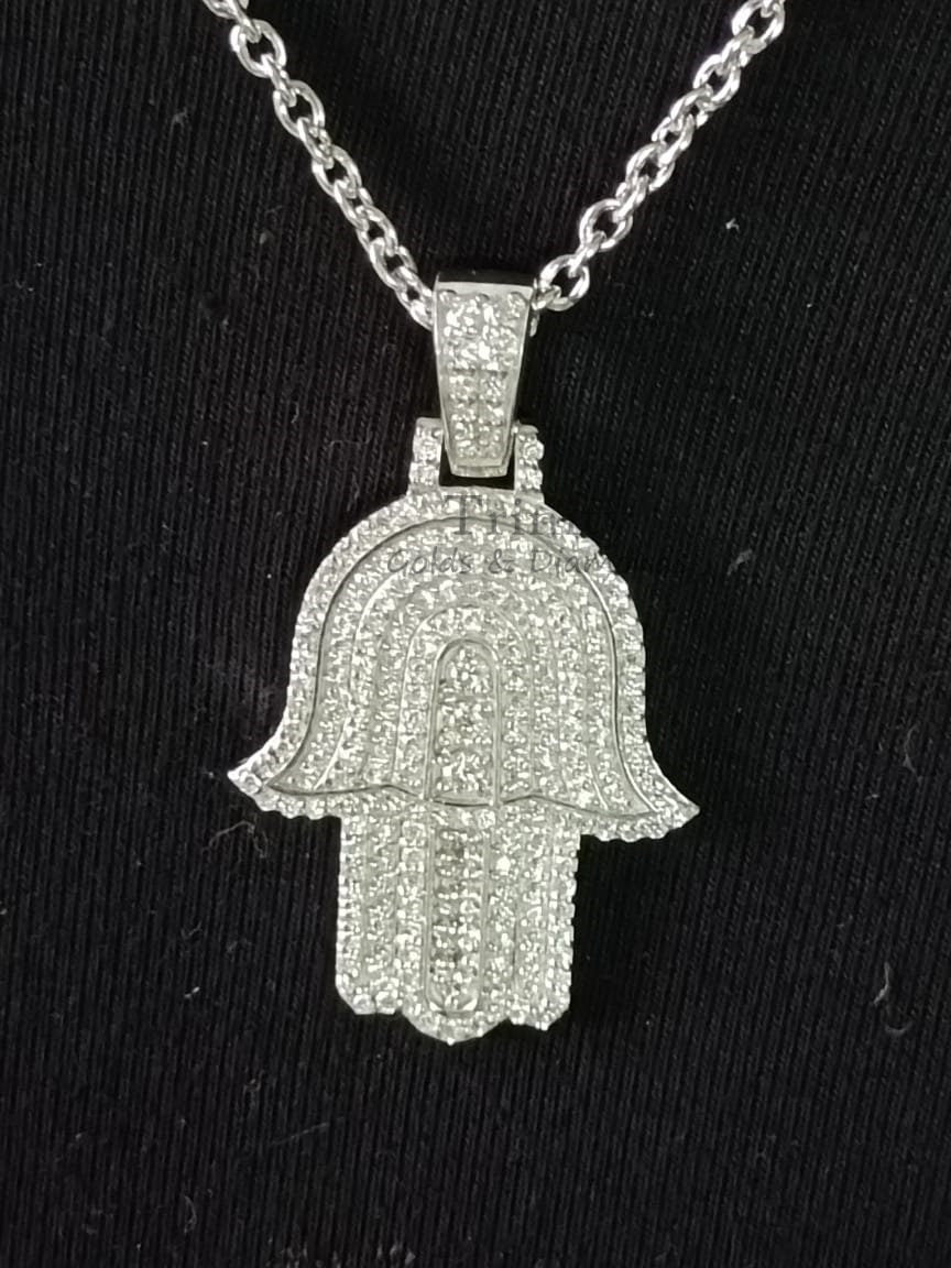 * This Beautiful Hamsa Hand Pendant is set with 262 Round D VVS Moissanite Stones set in solid 925 Sterling Silver.