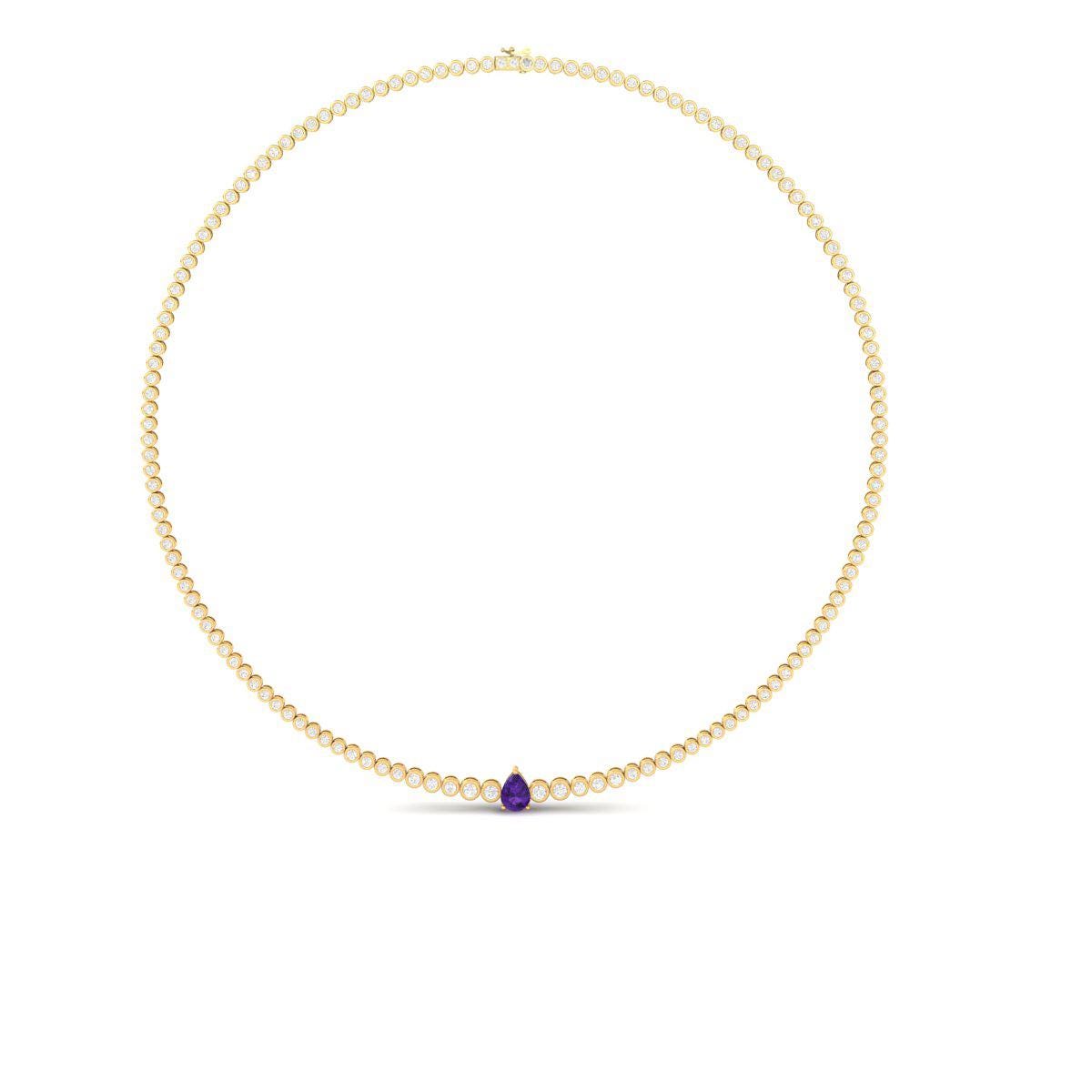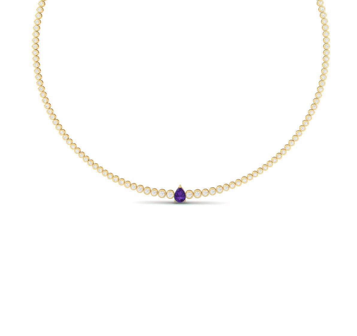 Pear Cut Tennis Necklace • Bezel Set Necklace • Handmade Diamond Jewelry • Mothers Day Gift for Her • Purple Gemstone Necklace