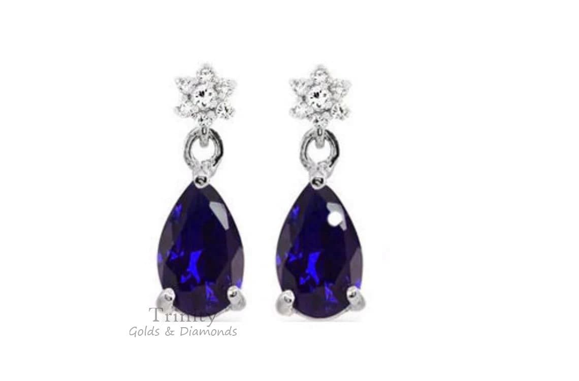 PEAR SAPPHIRE EARRINGS, Blue sapphire dangle Earrings For Her. Screwback Sapphire Earrings, Gemstone Dangle Earrings, Birthstone Dangle Ear
