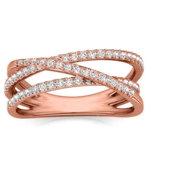 Real Moissanite Diamond Criss-Cross Ring, Anniversary Ring, Twist Ring, 14k Yellow Gold Plated, Engagement Wedding Ring, Gift For Her