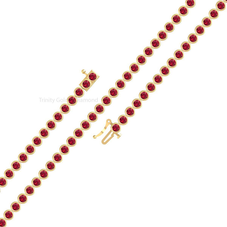 Ruby Bracelet, Ruby Round Cut Tennis Bracelet, Bezel Set Bracelet, July Birthstone, Ruby Bracelet for Her, Handmade Gemstone Bracelet